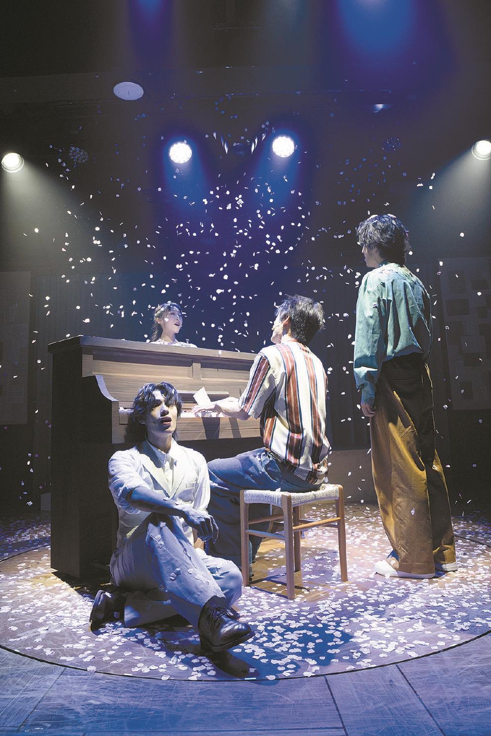 他們是用什么連接起那看似“前世有緣”的兩個故事的呢?主要不是“緣分”或“天命”,而是兩個藝術家的創(chuàng)作——就像制作該劇的“劇伙”主創(chuàng)團隊自己所做的一樣。這個團隊包括導演編舞劉曉邑,編劇作詞黃菀卿、陶倩妮、薛敏,作曲編曲徐肖、姚旭之,制作人和曉維,出品人張博禹。就像一面他們自己的鏡子,這是一部展示音樂劇創(chuàng)作過程的“元戲劇”(Meta-theatre)。