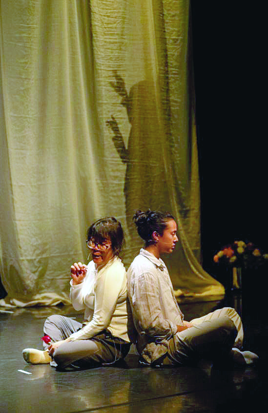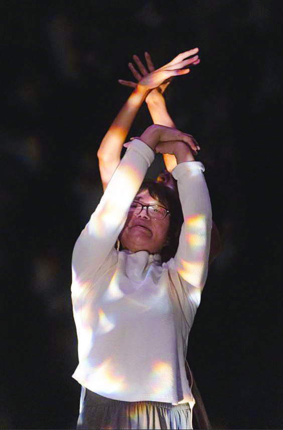 法魯克和余秀華合作詩歌舞蹈劇場作品《萬噸月色》,試圖把詩里的“陰影”意象轉(zhuǎn)化成某種新鮮的舞臺(tái)象征——讓詩人在光與暗交錯(cuò)的空間里跳舞,在不同尺寸的“陰影”下舞蹈,表達(dá)不同生命階段對(duì)“陰影”的感受。(均受訪者供圖)