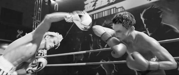 片中總長(zhǎng)20多分鐘的精彩打斗戲,一是難在如何用動(dòng)畫(huà)呈現(xiàn)?!氨热绺穸愤x手的肌肉非常清晰,隨著運(yùn)動(dòng)狀態(tài)還要不停變化,我們花了一年時(shí)間完善畫(huà)面,幾乎每一塊體表能看到的肌肉,都把它做出來(lái)?!倍钦惺脚c節(jié)奏如何既體現(xiàn)格斗比賽特點(diǎn),又帶給觀眾爽感。擂臺(tái)戲不能利用場(chǎng)景和道具,僅憑選手“肉搏”,在招式有限的情況下,不能讓人覺(jué)得重復(fù)。為此,主創(chuàng)不僅展示了中國(guó)功夫、泰拳、巴西戰(zhàn)舞等多種格斗技術(shù),還利用運(yùn)鏡、剪輯、節(jié)奏變化等各種手段提升打戲觀賞性。影片動(dòng)作指導(dǎo)張鵬先帶領(lǐng)真人演員拍一遍打戲,剪好后交給動(dòng)畫(huà)團(tuán)隊(duì)調(diào)整,然后用動(dòng)作捕捉技術(shù)轉(zhuǎn)化到電腦里,再由動(dòng)畫(huà)師做修正與最終呈現(xiàn)。在此過(guò)程中,孫海鵬不僅參考了大量真實(shí)格斗比賽,還借鑒了不少香港經(jīng)典動(dòng)作片。