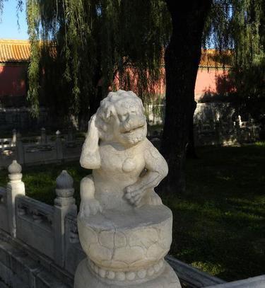 故宮有座斷虹橋,雖處在非開放區(qū),但卻因橋上萌態(tài)十足的石獅子聲名遠播。其中一只“護襠萌獅”其照片去年更為網(wǎng)友熱傳。只見它一爪摸著后腦勺,一爪護在襠部,嘴巴微張,雖然經(jīng)過日久風吹,多少有些面目模糊,但抓耳撓腮、欲說還休的“憋屈”樣依然萌態(tài)十足。