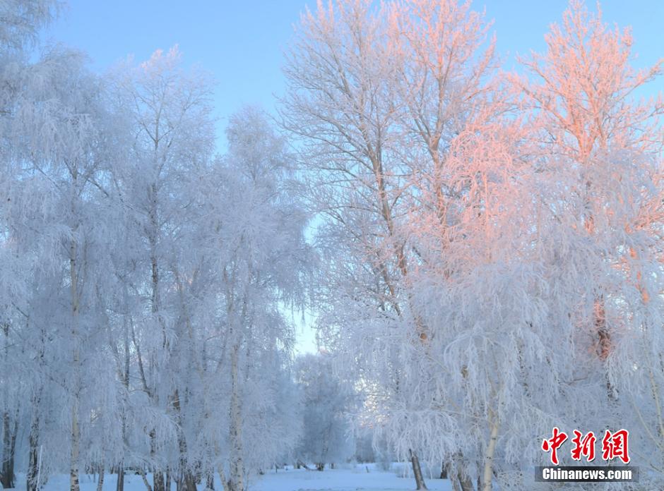 連日來,新疆阿勒泰地區(qū)遭遇十年來罕見強降雪,雪后初霽,氣溫漸降。1月4日,受超低溫天氣的影響,阿勒泰哈巴河白樺林出現大面積霜掛美景,晶瑩剔透,潔白無瑕,銀裝素裹,成為一道道美麗的風景線。 謝師民 攝