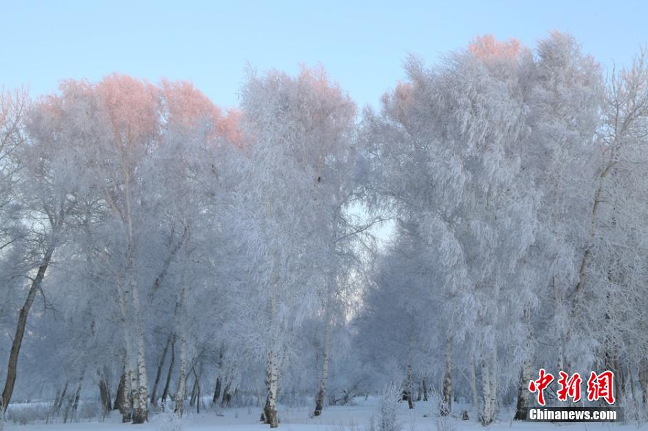 新疆阿勒泰罕見降雪后 現(xiàn)千里霜掛美景