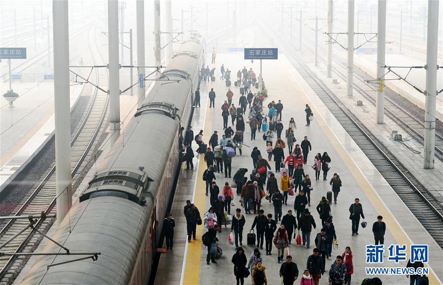 一輛動(dòng)車組列車駛離石家莊火車站(1月9日攝)。 1月10日零時(shí)起,全國鐵路實(shí)行新的列車運(yùn)行圖,增開旅客列車285.5對,其中增開動(dòng)車組列車281.5對。運(yùn)行圖調(diào)整后,全國鐵路開行旅客列車總數(shù)達(dá)到3142對,其中動(dòng)車組列車1980.5對。新華社記者 牟宇 攝