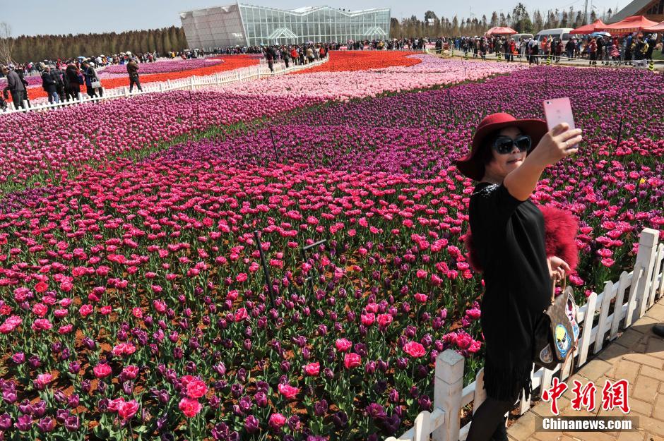 3月9日,昆明撈魚河濕地公園22畝約60萬株郁金香盛開,吸引了大量的游客和市民排隊前來賞花、拍照。據(jù)了解,撈魚河濕地公園種植的郁金香均是從荷蘭進口的,花期為25天。自向民眾開放以來,每天平均有兩萬人進園賞花。中新社記者 任東 攝