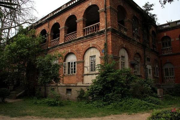 日本領事館,建于1897年,現(xiàn)編門牌鹿礁路24號至28號,離英國領事館僅一箭之地,翼角可望。該建筑四周設有連拱券柱式外廊,雙柱桁架,樓頂女兒墻與外廊護欄,采用的卻是本土燒制的紅陶寶瓶狀透空欄桿,這是維多利亞時代英式建筑的堂皇高軒,與中國式古樸典雅的折中。1928年,日本領事館在其館側(cè)又建造兩幢紅磚樓,以做日本警署及其公寓所用,其中28號樓為典型的日本明治維新后的和式現(xiàn)代建筑。