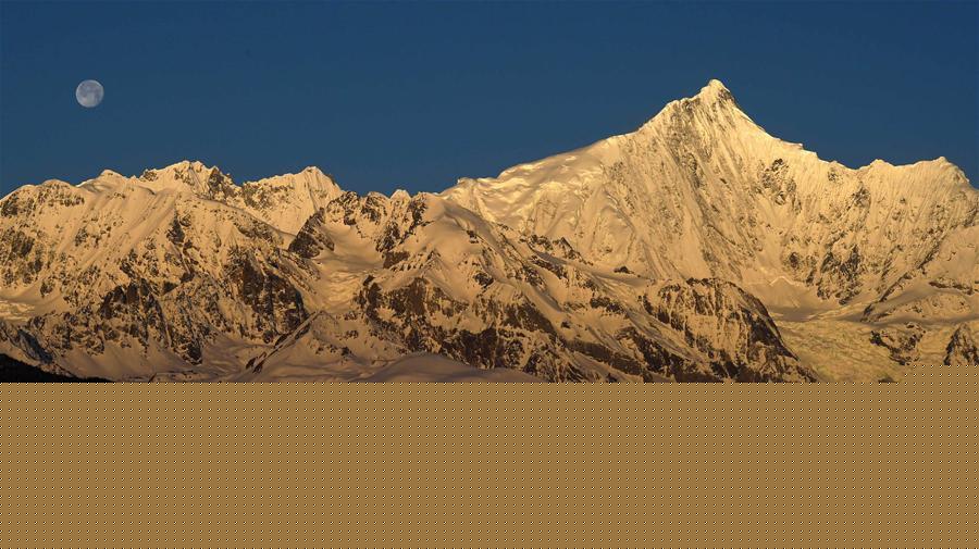 這是3月25日清晨拍攝的梅里雪山“日月同輝”景觀。梅里雪山位于滇藏交界的云南省迪慶藏族自治州德欽縣境內(nèi),是世界自然遺產(chǎn)“三江并流”的主要自然景觀之一。梅里雪山常年云霧籠罩,太陽(yáng)光只在少數(shù)天晴的清晨照射在雪山頂上,形成絕美的“日照金山”美景。有時(shí)月亮尚未落山,太陽(yáng)已經(jīng)升起,更是形成了難得一見(jiàn)的梅里雪山“日月同輝”奇觀。新華社記者 王長(zhǎng)山 攝