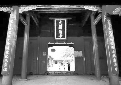 鐘樓上懸吊的大銅鐘叫幽冥鐘,也叫長鳴鐘,鑄造于明天啟年間(1612-1627年),鐘身高八尺,最大外徑五尺,厚三寸,鐘口邊緣成蓮花瓣形狀,外皮刻有楷書佛經(jīng)一部,共有一萬多字。這口銅鐘是五臺山寺廟中最大的鐘,據(jù)說重九千九百九十九斤。穿過鐘樓門洞,沿石鋪道右拐左折,便是顯通寺的山門。山門看上去豪雄而典雅,兩旁豎著石碑,碑身一邊是大草“龍”字,一邊是大草“虎”字,自由揮灑,一筆寫就,字形具有龍虎的形象,為雷雨居士所書。據(jù)說,佛寺選址講求風(fēng)水,除了靠山之外,總以左青龍、右白虎為佳,顯通寺山門兩側(cè)無此二山,故立此二碑為補(bǔ)。