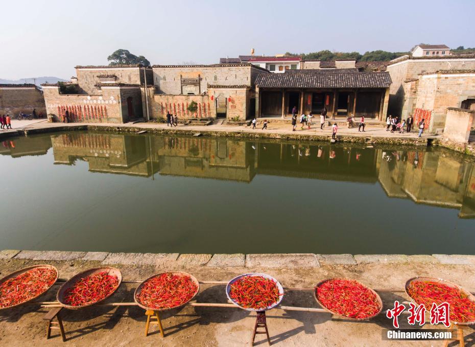 12月10日,航拍位于江西金溪縣有著600多年歷史的中國(guó)歷史文化名村、中國(guó)傳統(tǒng)村落竹橋古村,俯瞰全村,形似一柄巨扇。該村現(xiàn)保存有明代所建民居8幢,明代祠堂1幢,其余為清代建筑,青磚灰瓦,樸實(shí)素雅,為贛派建筑最典型的代表。村前溪水長(zhǎng)流,良田萬(wàn)頃,村后茂林修竹,鳥(niǎo)鳴樹(shù)幽,身歷其境,如入畫(huà)中。傅建斌 攝
