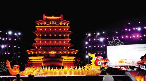 競演最后,一條巨龍騰空而起,象征著我市文化旅游產(chǎn)業(yè)像一條騰飛的巨龍,抬龍頭、挺龍胸、舞龍身、活龍水。