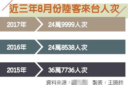 近三年8月份大陸游客赴臺(tái)人次。(圖片來(lái)源:臺(tái)灣《旺報(bào)》)