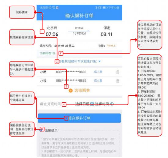 12306客戶端內(nèi)的候補(bǔ)購(gòu)票示意圖