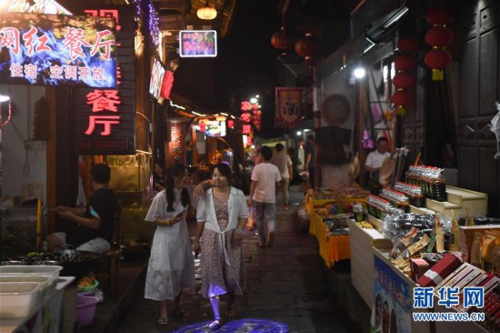 6月11日,游客在湘西土家族苗族自治州永順縣芙蓉鎮(zhèn)景區(qū)內(nèi)游覽。 新華社記者 薛宇舸 攝