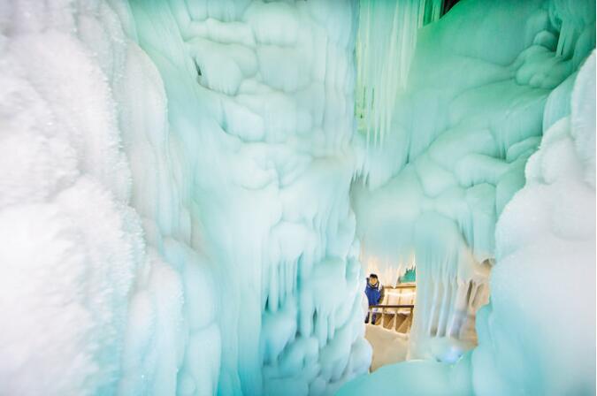 洞外鮮花盛開(kāi),綠樹(shù)成蔭,洞內(nèi)卻寒氣逼人。目前,洞內(nèi)已開(kāi)發(fā)部分分為三層,有冰簾、冰鐘、冰花、冰人、冰菩薩等,堪稱(chēng)一個(gè)冰的世界,在五彩燈光的照射下,呈現(xiàn)出夢(mèng)幻般的景象,被稱(chēng)為世界奇觀。