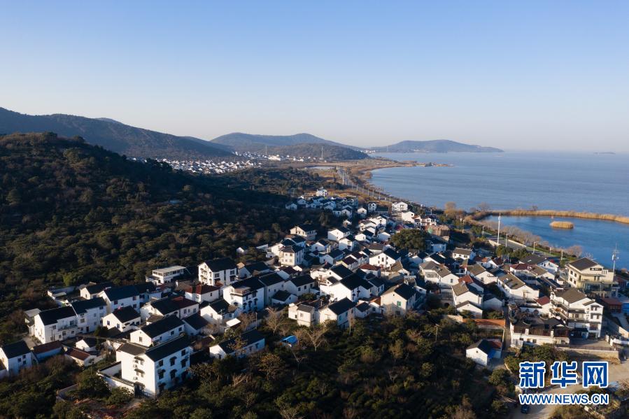1月13日拍攝的蘇州吳中區(qū)金庭鎮(zhèn)西山島景色(無人機(jī)照片)。