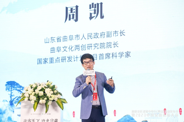 山東省曲阜市人民政府副市長周凱做主題演講 山東省曲阜市人民政府副市長周凱在演講中表示,我們的文明需要對話,中華大地上不同區(qū)域的各種文化,徽州文化、儒家文化,都是一個對話,要分享,在世界文明對話中分享中國的哲理智慧,發(fā)出中國聲音,講好中國故事,也是我們產(chǎn)業(yè)化發(fā)展的一個最關(guān)鍵的文化內(nèi)核。