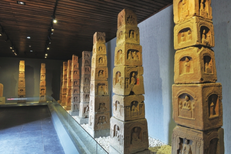 走進長治市博物館,仿佛進入了歷史的長廊,從創(chuàng)世之初、石之美者、塑土成陶、晶玉之瓷到吉金佳器,5個單元的館內(nèi)陳列展覽盡顯了長治古老的文明。其中的“創(chuàng)世之初”主要反映早期人類在長治地區(qū)的生產(chǎn)生活痕跡。展品有義和、花坡兩處舊石器時代文化遺址和多處新石器時代文化遺址,表明了長治是中華文明的早期發(fā)祥地之一?!笆勒摺标惲械挠袷褡炼傻钠魑铮饕鐾劣谖髦?、春秋、戰(zhàn)國墓葬中,種類豐富,精美非凡。多為祭祀、禮儀、裝飾、陳設(shè)用品,有極高的歷史價值和藝術(shù)價值?!八芡脸商铡闭龟惖奈奈镏饕翘掌?,從新石器時代遺址中出土的體現(xiàn)“龍山文化”特色的陶器,到商代、漢代,直至隋唐之際的陶器,時間跨度非常之大。種類涵蓋飲食器、貯藏器等生活實用器和專為殉葬而制作的各類明器。尤其是用作明器的三彩陶器,凡與死者在世生活有關(guān)的如建筑、家具、牲畜和人物等無不具備,包羅萬象,真實再現(xiàn)了當(dāng)時各個階層人士的不同生活面貌。“晶玉之瓷”展陳的有隋代的青瓷器、唐代的白瓷,以及宋、金、元代的瓷器。據(jù)介紹,珍藏的宋、金、元時期瓷器品種數(shù)量多,南、北窯系均有,主要以霍州窯和磁州窯系列為主,其中,長治的八義窯(磁州窯系)生產(chǎn)的紅綠彩瓷是我國北方地區(qū)較具特色的釉上彩瓷?!凹鸺哑鳌闭故镜膭t是青銅器,以商、周器物為主。長治出土的商代器物與二里崗、殷墟時期銅器風(fēng)格一致,表明了晉式銅器的精美藝術(shù)造型和高超的工藝水平。