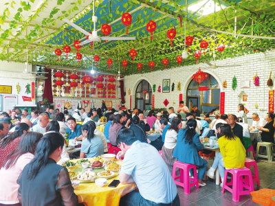 涼粉、野菜、水菜、農(nóng)家小炒肉、粉條豆腐絲……隨著筷子的一開一合,一道道美味來到了舌間,一道道農(nóng)家菜入口,心底的鄉(xiāng)愁也漸漸隨之蘇醒。