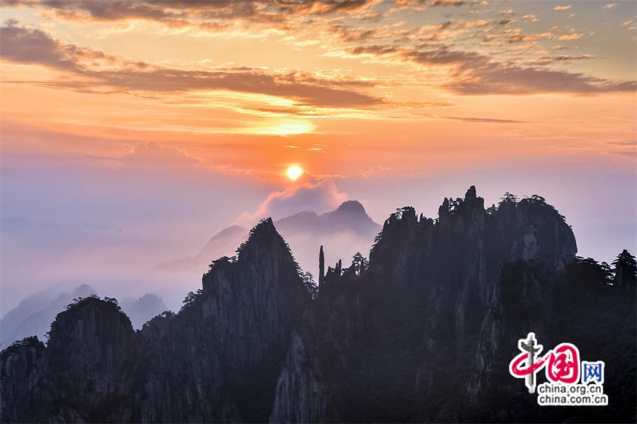 【點(diǎn)睛】“立秋”日安徽黃山驚現(xiàn)紅日、朝霞、云海同框,日出時(shí)分一輪紅日在滿天紅霞中冉冉升起,云海在陽光里變幻著色彩,人們仿佛置身于一幅引人入勝的風(fēng)景畫中。