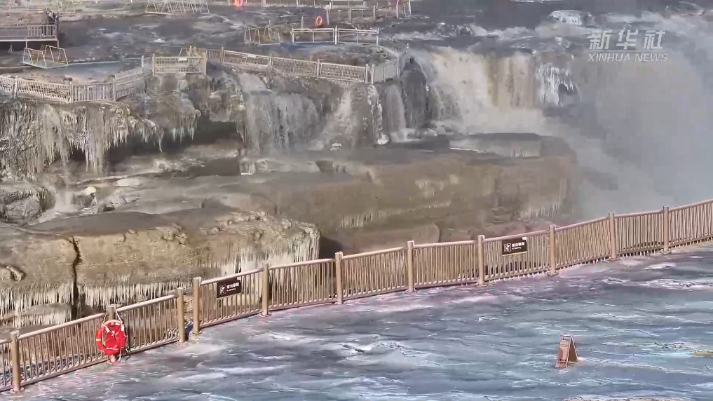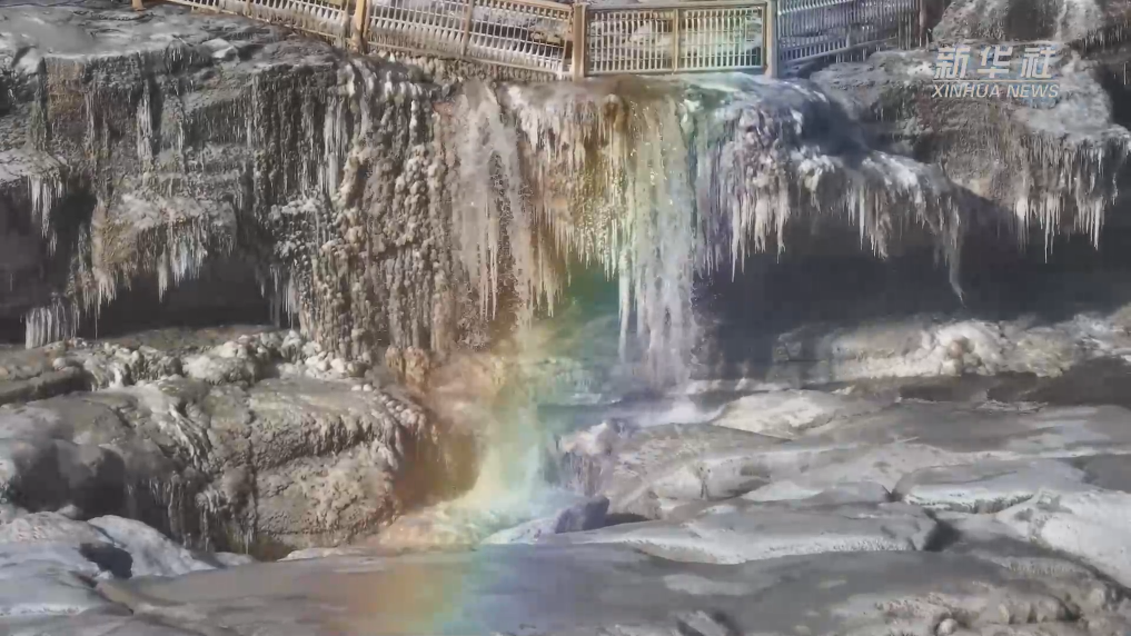 黃河壺口瀑布現(xiàn)彩虹冰掛美景