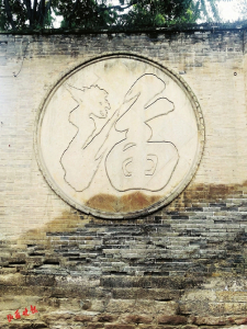 “龍鶴福”磚雕影壁位于張壁古堡賈家巷,是官紳張禮維故居的一部分,建于清朝乾隆年間,至今已有二百多年歷史。影壁上的這個(gè)“福”字,起筆狂草灑脫俊逸,轉(zhuǎn)承行書剛勁有力,而落筆于“田”字時(shí)則急轉(zhuǎn)為楷端莊方正。福字集三種書法為一體,凌而不亂渾然天成。