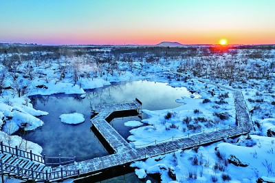 五大連池世界地質(zhì)公園位于黑龍江省黑河市,地處小興安嶺山地向松嫩平原的過渡地帶,境內(nèi)有14座火山和5個主要火山堰塞湖,擁有保存完整的火山地質(zhì)地貌,有“天然火山博物館”和“打開的火山教科書”等美譽。寒冬時節(jié),公園被積雪覆蓋,靜美而又壯觀。圖為1月29日拍攝的五大連池世界地質(zhì)公園溫泊景區(qū)冬日雪景。新華社記者 謝劍飛攝