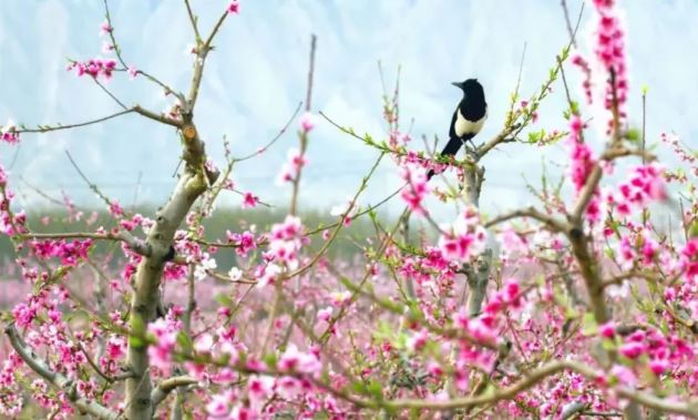 芮城的春天,綿延的山頭也悄然綻放出了生命的色彩。一簇簇、一樹樹的杏花,如同精心編排的舞蹈,在山谷間輕盈地蔓延開來。大片桃花林也如約而至,桃花競相綻放,將整個田地裝點得如詩如畫。粉嫩的桃花在枝頭搖曳生姿,花瓣輕輕舒展,散發(fā)出淡淡的香氣,吸引了無數(shù)蜜蜂和蝴蝶在花間翩翩起舞。