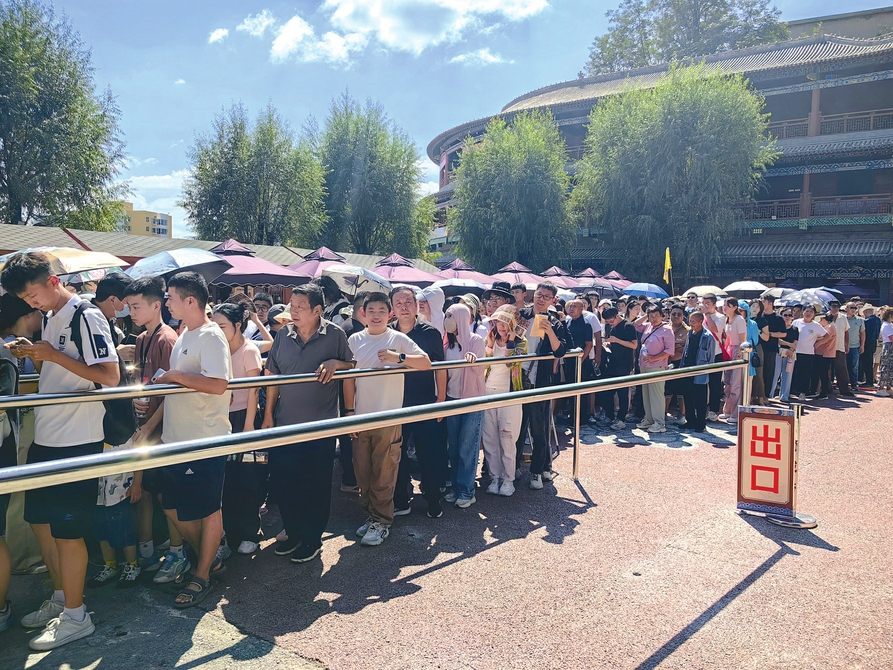 中秋小長(zhǎng)假期間,隰縣小西天景區(qū)游客數(shù)量暴漲,圖為游客們有序排隊(duì)。杜磊攝