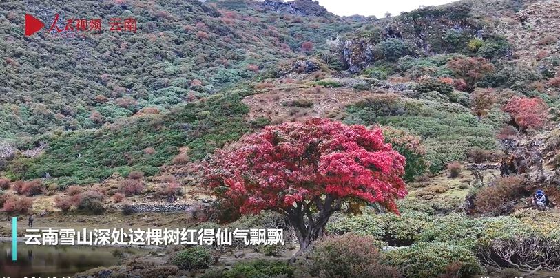 云南香格里拉雪山深處這棵樹紅得仙氣飄飄