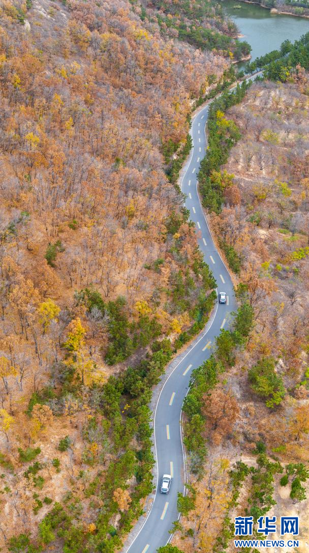 車(chē)輛行駛在九仙山景區(qū)的山路上(無(wú)人機(jī)照片)。新華網(wǎng)發(fā)(單英 攝)