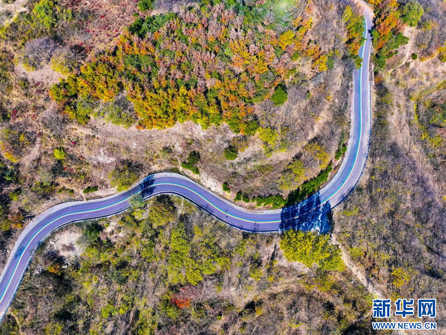 盤(pán)山公路仿佛一條飄帶纏繞在山間(無(wú)人機(jī)照片)。新華網(wǎng)發(fā)(薄林 攝)