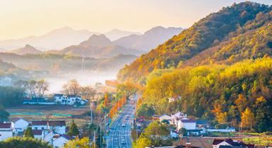 2024年12月1日,安徽省蕪湖市繁昌區(qū)孫村鎮(zhèn)中分村,錯(cuò)落有致的民居與山巒疊嶂、蜿蜒道路、炊煙晨霧等在朝陽(yáng)的照射下相映成景,宛若人間仙境。肖本祥攝(人民圖片網(wǎng))