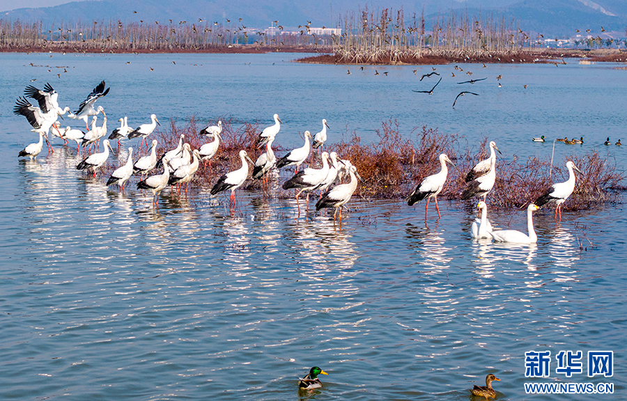 12月19日,安徽省合肥市廬江縣黃陂湖濕地,國家一級保護(hù)動物東方白鸛在此嬉戲、覓食,自由飛翔。 近年來,廬江縣加大黃陂湖濕地保護(hù)力度,4萬多畝的濕地環(huán)境得到較大改善。每年冬季,東方白鸛、白鶴等大量珍稀候鳥都按時來此過冬,萬鳥齊飛的壯觀場面已經(jīng)成為廬江縣黃陂湖濕地最靚麗的風(fēng)景。新華網(wǎng)發(fā)(左學(xué)長 攝)