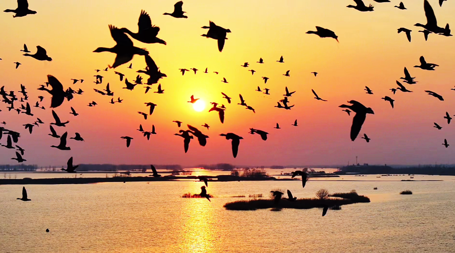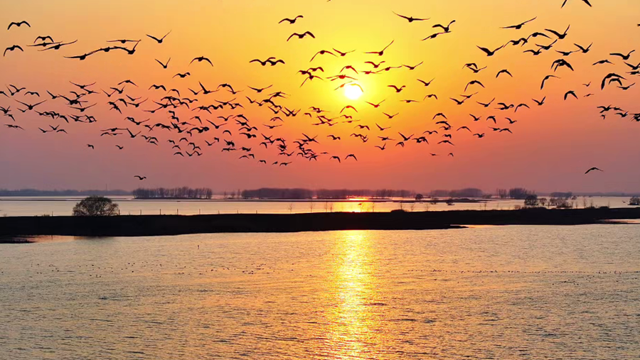 ?初春時(shí)分,在夕陽(yáng)余暉映照下,安徽省潁上縣秋家湖濕地被染上一層夢(mèng)幻般的色彩。放眼望去,成群飛鳥(niǎo)與漫天霞光融為一體,繪就出一幅壯美而靈動(dòng)的生態(tài)畫(huà)卷。(徐紅梅)