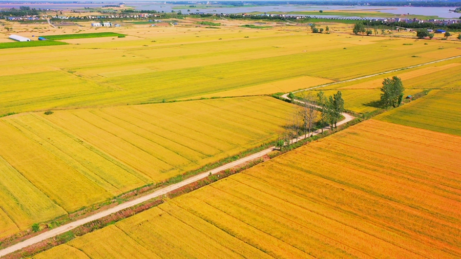 初夏時節(jié),安徽省潁上縣廣袤大地上麥香四溢。麥田在陽光下泛著金黃,麥浪滾滾,收獲在望。麥田、村落、河流、阡陌構成一幅美麗的田園風光。