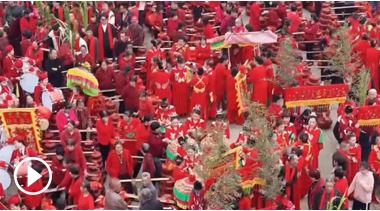 千擔紅盤列成長陣,鑼鼓聲震徹鄉(xiāng)野,這就是莆田市涵江區(qū)新坡村最具代表性的元宵民俗活動之一——千人擔盤鬧元宵?;顒又?,全村按生肖和年齡輪值“福首”,由其牽頭組織,將親朋好友家的擔盤集中巡游祈福。熱鬧的儀式不僅吸引八方賓客慕名而來,也讓不少僑胞跨越山海返鄉(xiāng)團聚。正月十一,人民日報記者走進新坡村,探訪這場承載鄉(xiāng)情與祝福的元宵盛會。
