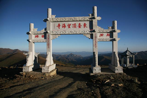 望海峰的盛景在于東觀日出。由于東面再無(wú)大山阻擋,所以人的目力可東眺非常遙遠(yuǎn)的地方。峰頂曾建有望海樓,專門為觀景而建??上昃靡褮?,1985年重建,為望海寺,內(nèi)供聰明文殊。有史籍記載日出之壯麗景象:“每當(dāng)蒸云寢壑之隙,爽氣澄秋之際,于日出扶桑之時(shí),可望紅日十倍于車輪,紅輪之下,隱隱水光閃爍,若波若鏡,瑰麗非凡。1977年8月,趙樸初先生登東臺(tái)觀日出后乘興填詞《五臺(tái)雜詠·調(diào)寄憶江南》,形象描繪了東臺(tái)日出之勝景: