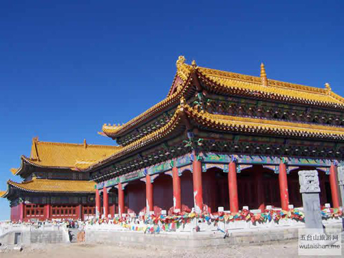 五臺(tái)山中臺(tái)翠巖峰,又名平頂山,海拔2894米,居?xùn)|、西、南、北四臺(tái)的中心,也是四臺(tái)的發(fā)脈之祖,臺(tái)頂面積也最大?!肚鍥錾街尽吩疲骸皫p巒雄曠,翠靄浮空”。其山勢(shì)酷似一頭挺立的雄獅。臺(tái)頂寺院名作演教寺,內(nèi)供孺童文殊。