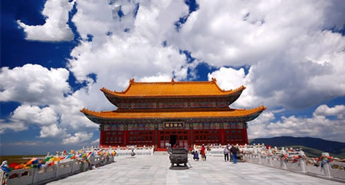 夏日的中臺(tái)頂青綠如黛,碧如翡翠,猶似一堆巨大的祖母綠。游人走累了,躺在細(xì)若絲絨、猶若天然地毯的青草上,面向天空,感覺(jué)天藍(lán)藍(lán)的,云柔柔的,風(fēng)輕輕的,特別清爽。飄動(dòng)著的白云,千變?nèi)f化地追蹤著人們的足跡,還癡癡地纏繞在身前身后,讓人如置身仙境,美妙異常。
