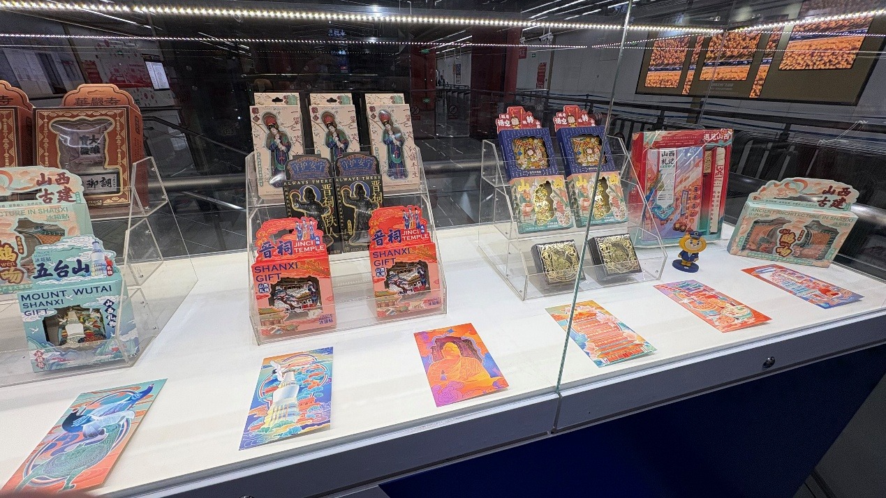 通達(dá)街站的展示柜里,總圍著不少人。蘇氏琉璃泛著琥珀般的光,山西民居磚雕帶著泥土的粗糲,有游客專門前來打卡,在社交媒體分享“山西的寶貝”。也會(huì)有各級(jí)非物質(zhì)文化遺產(chǎn)代表性傳承人“閃現(xiàn)”地鐵,隨著手指翻飛,紅紙片一會(huì)兒就變成了“山西古建”;核桃雕刻手工技人拿著刻刀,把山西窯洞微縮進(jìn)山西特產(chǎn)核桃里;依托地鐵的“流量出口”,中鐵電氣化局太原中鐵軌道公司打造的“晉物”文創(chuàng)品牌,涵蓋軌道文創(chuàng)、道地味道等5大類產(chǎn)品,乘客在開化寺站不僅可以線下購(gòu)買,還能掃碼進(jìn)入線上商城,將山西的文化記憶與特色農(nóng)產(chǎn)品帶回家。