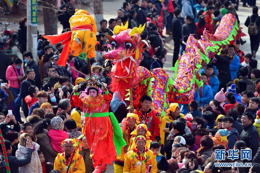 2月21日,社火隊在進行巡游拜年。當日,有著千年歷史的傳統(tǒng)村落——山東省章丘市三德范村組織31個社火隊舉行社火巡游拜年活動,在元宵佳節(jié)來臨之際為鄉(xiāng)親們送祝福。新華社記者 郭緒雷攝