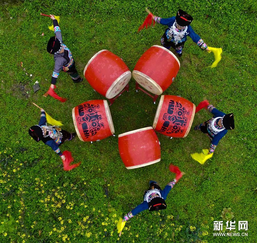 湘西苗族鼓舞,是我國苗族地區(qū)獨特的舞蹈藝術(shù),流傳于湖南省湘西土家族苗族自治州境內(nèi)的吉首市和鳳凰、瀘溪、保靖、花垣、古丈等縣。2006年,湘西苗族鼓舞列入第一批國家級非物質(zhì)文化遺產(chǎn)名錄。新華社發(fā)(蒲東峰 攝)