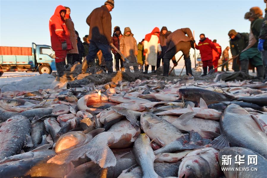 數(shù)九寒天,每天有近兩百名漁民聚集在吉林省松原市冰封的查干湖湖面上,他們沿用原始的捕魚方式,傳承著近千年的漁獵技藝。憑借獨(dú)特且原汁原味的漁獵技藝,每年查干湖冬捕都吸引眾多游客前來“探秘”,也為當(dāng)?shù)貪O民帶來可觀的收入。近年電商的加入更為這一產(chǎn)業(yè)錦上添花。據(jù)了解,今年冬捕節(jié)期間查干湖計(jì)劃捕魚260萬斤,可實(shí)現(xiàn)產(chǎn)值3000萬元,其中一半以上的魚都是從漁網(wǎng)“游”向互聯(lián)網(wǎng),“游”到全國各地百姓的餐桌上。新華社記者 張楠 攝