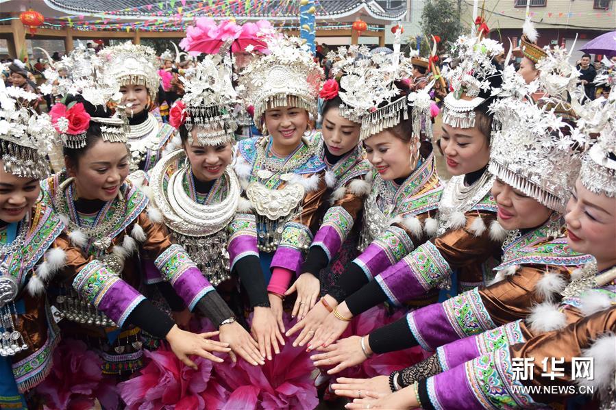 2月7日,廣西融水苗族自治縣安太鄉(xiāng)苗族群眾開展傳統(tǒng)的“打同年”民俗活動(dòng)。當(dāng)?shù)財(cái)?shù)百名苗族同胞與游客們歡聚一堂,一起開展對(duì)歌、蘆笙踩堂、文藝晚會(huì)等活動(dòng),歡慶新春佳節(jié)。 “打同年”是融水苗族村寨的一種民俗,即友好村寨之間的拜年聯(lián)歡活動(dòng)。新華社記者 李斌 攝
