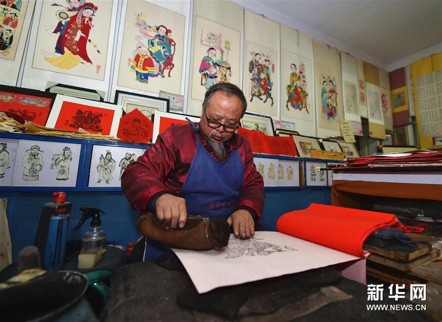 春節(jié)期間,山西省新絳縣的絳州木版年畫傳承人吳百鎖忙得不可開交,來購買“吉祥如意”“雄雞一唱天下白”等主題年畫的顧客絡(luò)繹不絕。山西省非物質(zhì)文化遺產(chǎn)絳州木版年畫發(fā)端于宋金,興盛于明清,從選料到雕刻再到上色都非常講究,一幅年畫的制作需要七八道精細(xì)工序。隨著時代的變遷,目前已鮮有專職雕刻、印制年畫的匠人。擁有嫻熟雕刻技藝的吳百鎖在傳承傳統(tǒng)工藝的基礎(chǔ)上,積極創(chuàng)作現(xiàn)代題材的作品,希望通過自己的創(chuàng)新讓更多少年兒童了解并愛上木版年畫,讓這門幾乎失傳的技藝綻放新的光彩。新華社記者 曹陽 攝