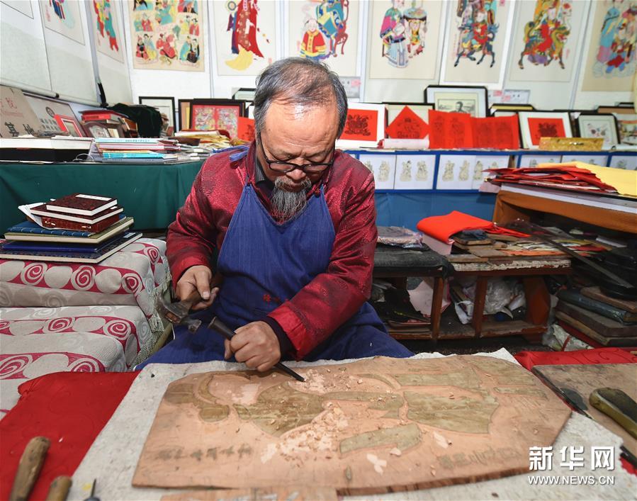 春節(jié)期間,山西省新絳縣的絳州木版年畫傳承人吳百鎖忙得不可開交,來(lái)購(gòu)買“吉祥如意”“雄雞一唱天下白”等主題年畫的顧客絡(luò)繹不絕。山西省非物質(zhì)文化遺產(chǎn)絳州木版年畫發(fā)端于宋金,興盛于明清,從選料到雕刻再到上色都非常講究,一幅年畫的制作需要七八道精細(xì)工序。隨著時(shí)代的變遷,目前已鮮有專職雕刻、印制年畫的匠人。擁有嫻熟雕刻技藝的吳百鎖在傳承傳統(tǒng)工藝的基礎(chǔ)上,積極創(chuàng)作現(xiàn)代題材的作品,希望通過(guò)自己的創(chuàng)新讓更多少年兒童了解并愛(ài)上木版年畫,讓這門幾乎失傳的技藝綻放新的光彩。新華社記者 曹陽(yáng) 攝