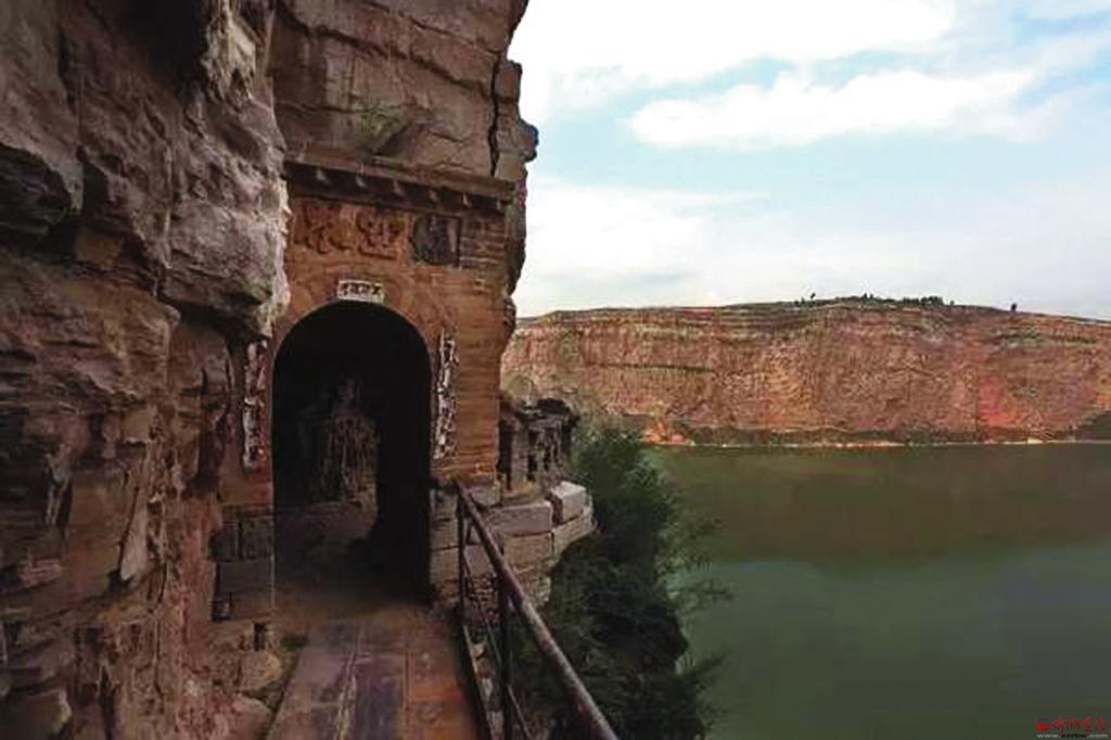沿著石壁繼續(xù)下行十多米,眼前出現(xiàn)一條羊腸小道,小道中途還有座獨木橋,橋的一端建有石門,門上刻“懸空界”三字,穿過石門便是聞名天下的彌佛洞。彌佛洞建在黃河峽谷絕壁上的一個天然石窟之中,洞內(nèi)怪石倒垂,犬牙交錯,人至其中如入虎口。從石洞后壁登23級石階,又有一石窟,高約兩丈,內(nèi)供佛像一尊。彌佛洞憑借雄渾壯觀的自然景觀給人們留下深刻印象,中國當(dāng)代著名畫家吳冠中先生觀后稱其為“黃河上的一大奇跡景觀”。