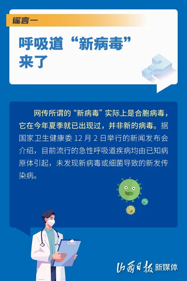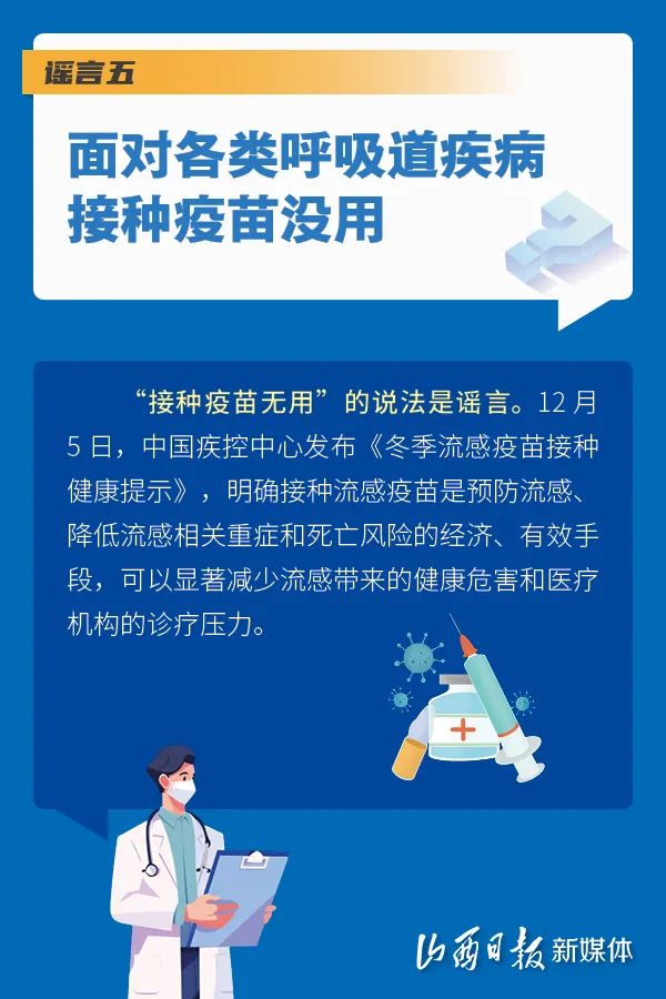 近期,呼吸道疾病呈現(xiàn)高發(fā)態(tài)勢。個別不實信息趁機傳播擴散,誤導(dǎo)公眾認知。特此澄清關(guān)于呼吸道疾病的5個謠言,幫助大家知曉呼吸道疾病的基本常識,做好健康監(jiān)測及預(yù)防措施。閱讀、收藏、轉(zhuǎn)發(fā)吧!