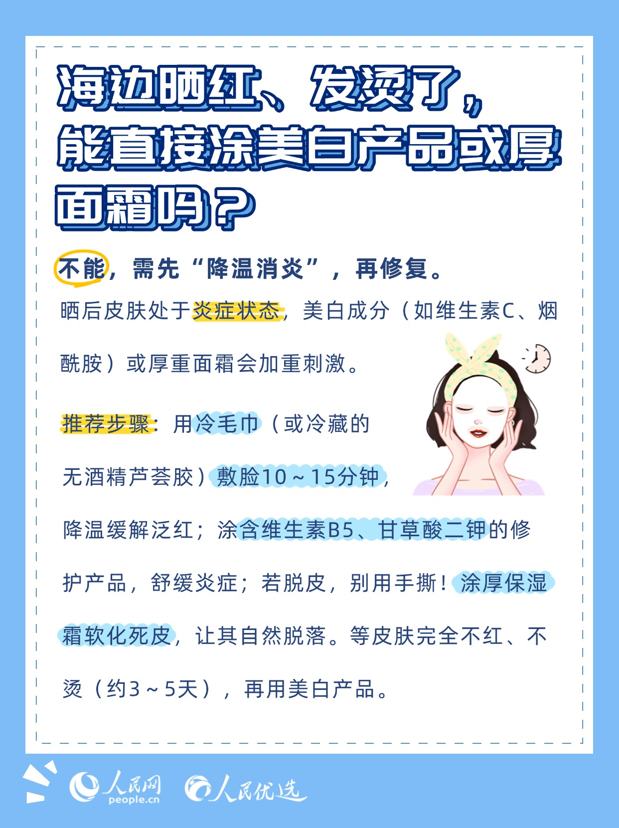 夏日炎炎,無論是泳池里的清涼暢游,還是海邊的逐浪嬉戲,都是驅(qū)散暑氣的不錯選擇。但玩水的快樂背后,卻藏著不少傷害皮膚的“陷阱”——泳池的消毒劑、海邊的強(qiáng)紫外線、海水中的高鹽分,稍有不慎就可能引發(fā)皮膚干燥、泛紅、曬黑、長斑甚至?xí)駛?。本期《人民?yōu)選來了》教你掌握科學(xué)的護(hù)膚方法,讓你在享受玩水樂趣的同時,保持健康的肌膚狀態(tài)。
