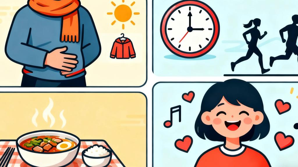 腹部保暖、三餐定時、規(guī)律作息、情緒管理是護(hù)胃“四大法寶”。AI繪圖??秋冬季如何打好“胃腸保護(hù)戰(zhàn)”?專家認(rèn)為,首先是做好腹部保暖,及時增添衣物,尤其要避免腹部暴露在冷空氣中,不要長時間處于寒冷環(huán)境。其次,飲食要以溫?zé)嵋紫癁橹?,盡量不吃生冷食物,三餐定時定量,減少腸道負(fù)擔(dān)。第三,規(guī)律作息,避免熬夜,結(jié)合適當(dāng)體育鍛煉促進(jìn)血液循環(huán),增強胃腸蠕動,提高身體的耐寒能力和免疫力,以此增強胃腸抵抗力。最后,焦慮和抑郁是胃腸疾病的“催化劑”,要學(xué)會釋放壓力,保持心情愉悅,不讓壞情緒“傷”胃。