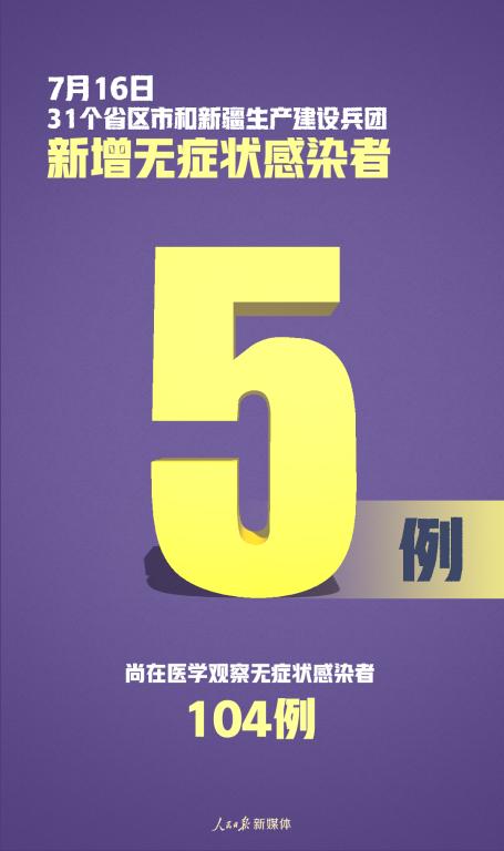 31個?。ㄗ灾螀^(qū)、直轄市)和新疆生產建設兵團報告新增無癥狀感染者5例(境外輸入2例);當日無轉為確診病例;當日解除醫(yī)學觀察5例(境外輸入4例);尚在醫(yī)學觀察無癥狀感染者104例(境外輸入79例)。